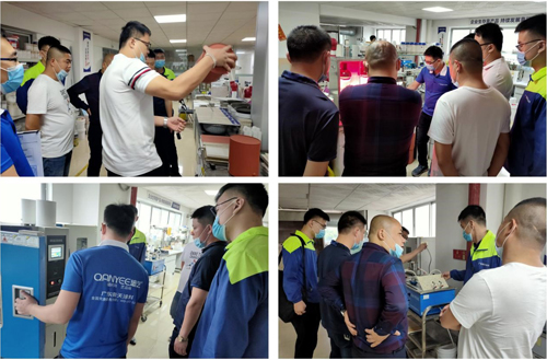 在現場,南天涂料一行領導還現場為來訪嘉賓們做了產品耐洗刷測定、高低溫交變實驗等模擬實驗。其中,在反射隔熱涂料的模擬實驗上,同時打開燈源,觀察桶頂背面溫度變化,使用南天冰凍涂料的桶頂背面溫度大大低于使用普通桶頂背面的溫度,經過3分鐘后,溫度差達到15℃,新品的隔熱效果在現場完美的展現。