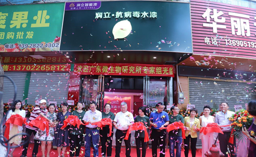 (潤立抗病毒涂料專賣店開業當天舉行了隆重的剪彩儀式)