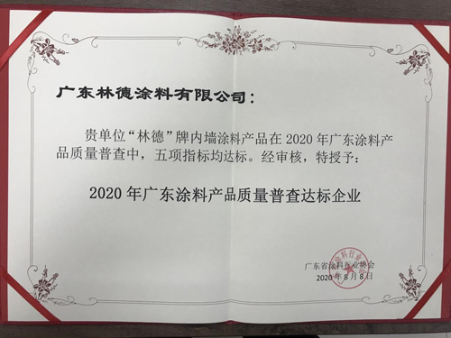 會議期間,廣東省涂料協(xié)會還隆重舉行了“2020廣東涂料行業(yè)質(zhì)量普查達標(biāo)企業(yè)表彰”頒獎典禮。憑借著過硬的產(chǎn)品品質(zhì),林德漆旗下的內(nèi)墻涂料產(chǎn)品順利通過質(zhì)量普查,得到行業(yè)的認(rèn)可和肯定,被授予“2020廣東涂料行業(yè)質(zhì)量普查達標(biāo)企業(yè)”榮譽稱號,在會上大放異彩,備受矚目。