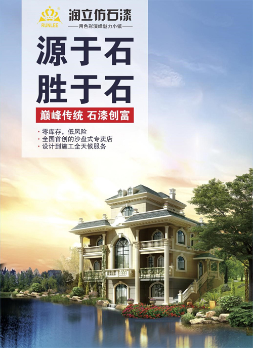 鑒于當前仿石漆市場趨于同質化競爭的局面,經銷商們急需一個擁有強大資本實力作背書的品牌。潤立漆在國內首創“潤立小鎮”新模式,同時發起了仿石漆“千城萬店”運動,以遍布全國的“線上+線下”營銷、培訓、設計與施工服務團隊為基礎,構建起成熟高效的全方位服務體系,解決客源難題,為效果交付提供有力保障,最終實現以服務增值拓寬盈利寬度的目的。
