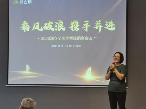 2020年9月8日,潤立漆經銷商交流總結大會正式召開。會上,潤立漆總部特意表彰了過去一年來在終端市場作出非凡成果的優秀經銷商;同時向經銷商家人們詳細講解潤立漆品牌近期的發展動態,以便達成更好的默契合作,全力以赴擘畫未來發展藍圖!