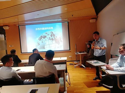 活動中設置了技術交流會討環節,大寶漆安排環保水性UV漆專案組資深專家鐘文龍副理分享在水性漆專業應用及涂裝技語方面的知識。