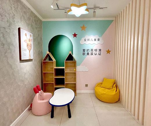 以家庭看重的兒童房區(qū)域?yàn)槔陜?nèi)直接打造了一個(gè)兒童小天地,不僅有安心環(huán)保高標(biāo)準(zhǔn)的立邦兒童漆守護(hù)童年,童趣的軟墊小沙發(fā)和桌椅搭配也為家庭消費(fèi)者提供了家居配件參考。