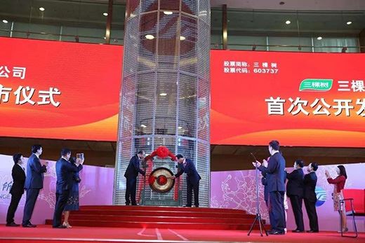 資料圖片:三棵樹上市敲鑼儀式。三棵樹是中國(guó)涂料行業(yè)當(dāng)前最成功的上市企業(yè)之一