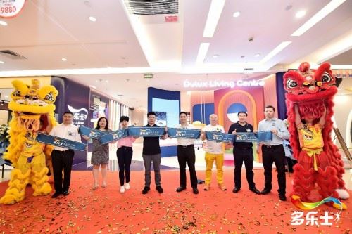 四川省室內(nèi)裝飾協(xié)會會長唐曉春、居然之家四川分公司總經(jīng)理劉飛、阿克蘇諾貝爾中國及北亞區(qū)總裁、裝飾漆中國及北亞業(yè)務集團董事總經(jīng)理郭振華等嘉賓為多樂士生活館剪彩。