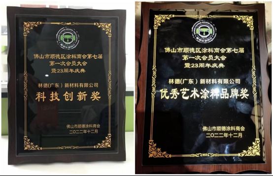 2022年12月,全球“造動節”(順德站)首發儀式、佛山市涂料行業協會第一屆第四次會員大會、佛山市順德區涂料商會第七屆第一次會員大會暨23周年慶典在順德喜來登國際會議中心隆重召開。在慶典頒獎環節,林德漆榮獲“科技創新獎”和“優秀藝術涂料品牌獎”,再次向業界展現了林德漆的超強實力。