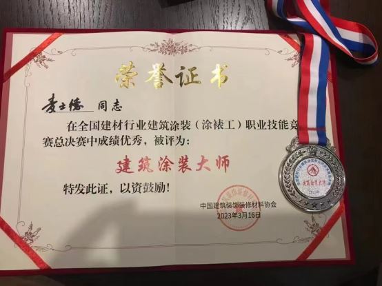 從去年順利通過順德預選賽,到如今進入決賽并取得“建筑涂裝大師”稱號。面對一項項榮譽,麥土德干得更起勁了,他想用實際行動感恩企業的肯定與培養,想用智慧和力量為行業貢獻自己的光和熱。