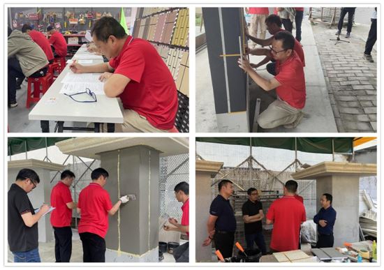 “三分產品,七分涂裝”,其含義不言而喻。涂料是半成品,需要涂裝工根據不同的工藝進行施工,從而呈現出不同的施工效果。本著“學之能用、用之能勝”的教學宗旨,方主任和賢東秘書長將理論與實操相結合,遵循“易施工、出效果”的工藝培訓理念,將林德漆仿石漆系列產品的特色工藝傾囊相授,加碼賦能終端。