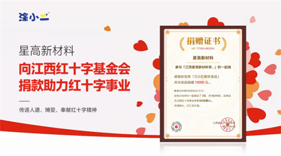 近日,江西星高新材料有限公司(簡稱“星高新材”)向江西紅十字基金會慷慨捐款,以實際行動彰顯本土企業的社會責任感,傳遞人道、博愛、奉獻的紅十字精神。這一善舉不僅體現了星高新材對公益事業的熱心支持,更展現了其在社會責任方面的深刻理解和積極實踐。