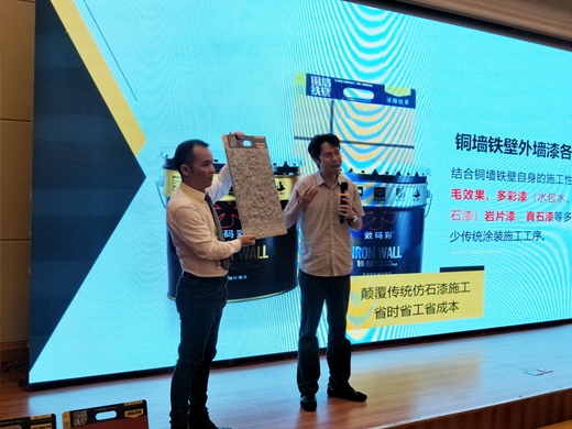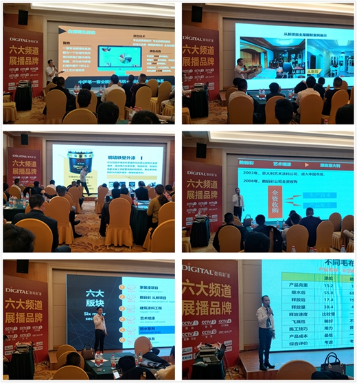 過硬的產品質量可以讓企業贏得市場、獲得更好的效益并有助于實現企業的可持續發展。為了讓在座嘉賓更好地掌握數碼彩產品的亮點和賣點,各大部門的負責人分別就“家裝漆、銅墻鐵壁外墻漆、藝術墻漆、防水涂料、輔材系列、從新項目”展開了專題講解,現場不斷響起雷鳴般的掌聲,對數碼彩的耀眼未來信心倍增!