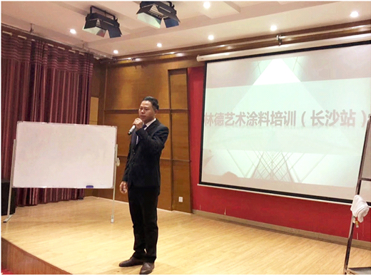 培訓(xùn)伊始,林德漆營銷總監(jiān)謝鋒先生親臨培訓(xùn)現(xiàn)場,簡單介紹了林德漆產(chǎn)品系列,并給每位學(xué)員配發(fā)藝術(shù)