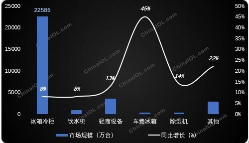 細(xì)分市場表現(xiàn)來看,冰箱冷柜和飲水機(jī)相對成熟,近兩年的快速增長屬于短期突發(fā)性拉動,不具備持續(xù)性,2022年預(yù)計會下滑;輕商制冷設(shè)備細(xì)分產(chǎn)品較多,不同產(chǎn)品的發(fā)展差異較大,整體預(yù)計可以維持個位數(shù)增長;車載冰箱和除濕機(jī)產(chǎn)品體量較小,未來增長可期,預(yù)計2022年增幅可以維持在15%以上。