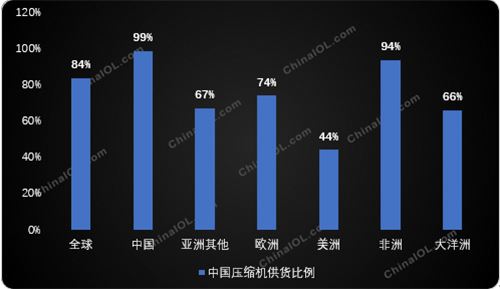 從供應(yīng)角度來看,2021年中國全封活塞壓縮機(jī)對全球供貨比例達(dá)到84%,其中對中國本土以及非洲地區(qū)的供貨比例均達(dá)到90%以上,對亞洲其他、歐洲和大洋洲的供貨比例也在60%以上。美洲地區(qū)的全封活塞壓縮機(jī)以巴西、墨西哥、美國等本區(qū)域供應(yīng)為主,但2021年當(dāng)?shù)氐娜饣钊麎嚎s機(jī)生產(chǎn)受到疫情影響,使得中國全封活塞壓縮機(jī)供應(yīng)比例提升到44.0%,同比提升了9個百分點(diǎn)。