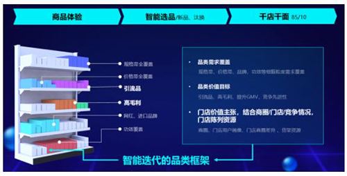 在商品結構方面,物美也曾面臨同質化商品的問題,千店一面,商品結構以大而全為主,對于商品結構的關注度大多停留在培訓和要求上。而隨著區域用戶的消費能力和購買喜好的改變,大而全的商品結構反而導致無法聚焦用戶個性化需求從而造成商品滿意度降低的現象發生,為此物美不斷梳理商品結構、精簡商品數量,圍繞每個SKU進行多維度的選品分析,及時汰換、新增在架商品品類,并綜合考慮商家所在區域的市場數據,及時調整商品結構,實現人工策略的系統自動化和算法驅動的系統智能化相結合,在有效減少門店面積的同時,優化了賣場商品結構,完成了品類寬度和深度的拓展。新品引進的成功率提高了30%,有效汰換率提升了25%。