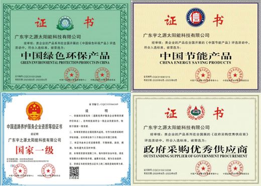 廣東宇之源太陽能科技有限公司專業生產制造太陽能路燈22年,是一家高新技術企業,也是《中國太陽能光伏照明總技術規范》等9項國標行標省標起草制定單位,被授予“中國綠色環保產品、中國節能產品、中國行業免檢產品、政府采購優秀供應商”等榮譽稱號,并獲得“中國道路養護服務企業國家一級資質等級證書”。公司擁有自主創新185項專利,創新研發出獲得國家發明金獎的太陽能路燈照明省電80%的獨有專利技術,可生產制造出同等配置的普通技術太陽能路燈的2倍亮度、5倍壽命、5倍陰雨天的好產品。宇之源作為全球太陽能智慧路燈的創領者,肩負引領綠色低碳循環發展的社會責任,目前,宇之源正在為國家“碳達峰、碳中和”重大戰略做出應有的貢獻。