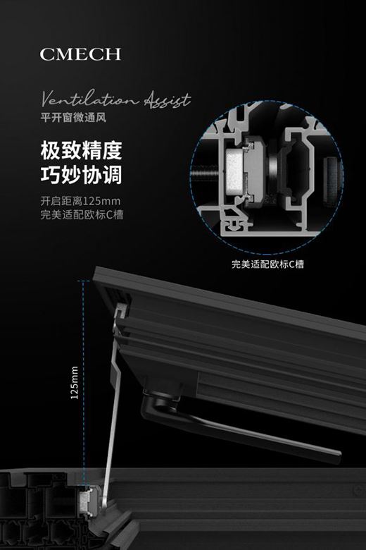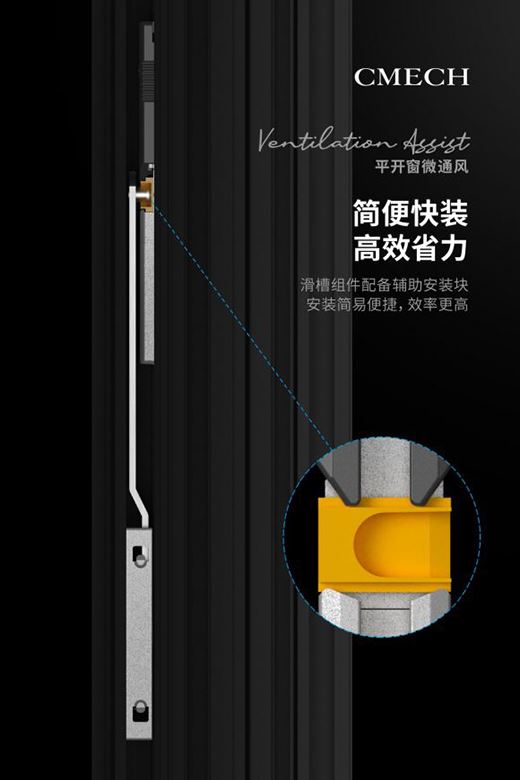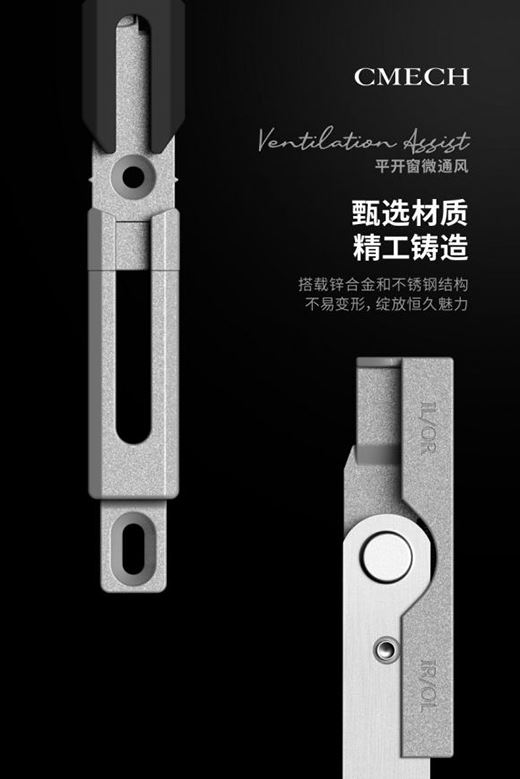 作為CMECH希美克推出的重磅的門窗五金組件,這款平開窗微通風產品在細節設計上可謂精益求精。