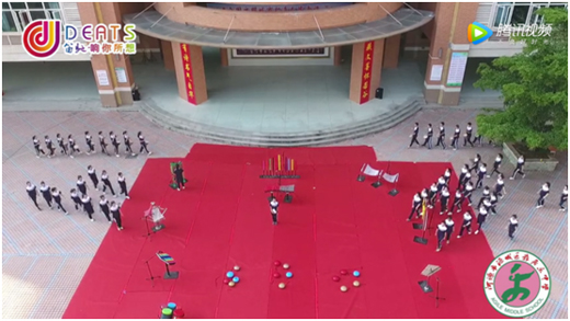 隨著手腕的輕輕揮動,跳動的音符隨之蕩漾開來,優美動聽的旋律響徹校園,深厚靈透的曲調縈繞操場上空。由于同學們對音樂的摯愛,無可挑剔的默契配合,一首動人的敲擊樂——《茉莉花》緩緩地從他們指尖敲擊出來。而令人遐想的音效——清幽、空靈、真實可感,配合金屬的敲擊聲,則又細膩剛硬、綿延致遠,這一串串的美妙音符皆從笛馳敲擊樂器中完美地展現出來。