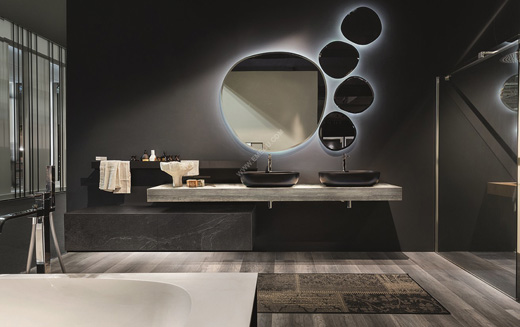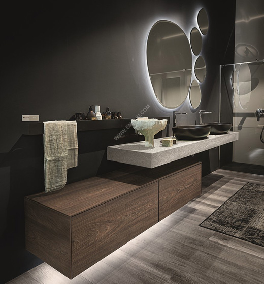 所有的系列都被設計成高度模塊化,以提供定制的解決方案。可在400多款飾面、多個面盆、200多個頂蓋、鏡子和照明燈中進行選擇。