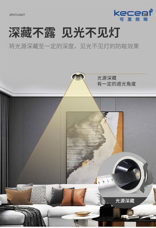 防眩效果較優的燈具,一般具有兩種或以上的防眩設計,比如KECENT可圣照明在售的防眩產品便集合了多種防眩設計,旨在為用戶提供更舒適的燈光環境。