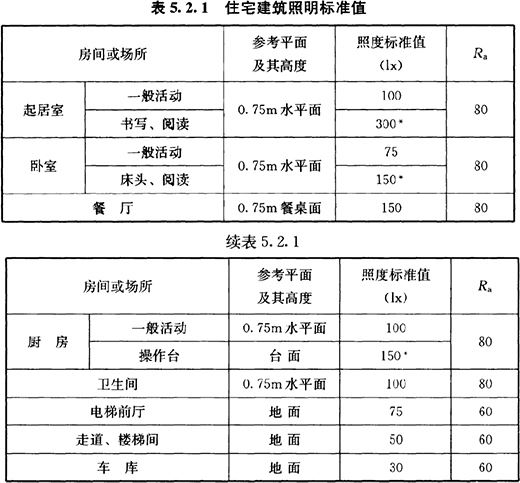 層高3.5m以內(nèi),家用嵌入式射燈功率5~8W、明裝射燈、軌道燈8~10W。