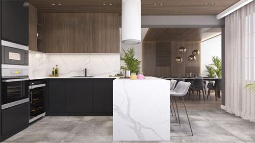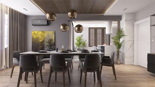 廚房和餐廳互為兩個(gè)單獨(dú)的空間,在廚房定制了一組島臺(tái),島臺(tái)用大理石包裹,現(xiàn)代感十足,可以作為閑暇時(shí)小酌一杯。餐廳選擇了一套棕色的餐椅,顏色更偏向暖色,能夠增加餐廳的暖意,營(yíng)造出更溫馨的環(huán)境氛圍。在餐桌的上方定制了一組吊燈,吊燈的造型靈動(dòng),充滿藝術(shù)感,在增加餐桌周圍亮度的同時(shí),也讓餐廳周圍的環(huán)境氛圍更藝術(shù)、更活躍。