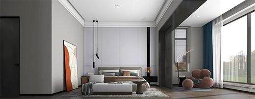 純色柔和的墻板,巧妙的拼接化處理,打造靜謐安寧的居室氛圍感。