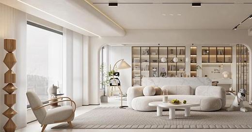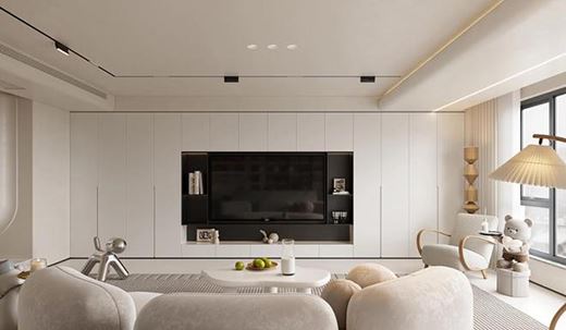 奶油風在裝修設計上以干凈的線條為主,視覺上給人溫柔、細膩、精致、浪漫的感覺。造型設計主要體現在頂面和墻面,裝修軟裝配色是重點,整個空間基本上以奶油色和乳白色為主色,通過奶黃,奶咖,原木等色彩進行點綴,增加空間設計層次感。
