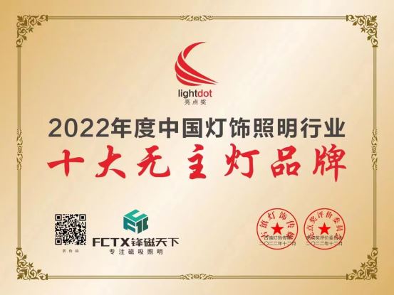 此次評(píng)選活動(dòng)秉承一貫的客觀、公正、公平原則,遴選出致力于品牌建設(shè)的優(yōu)秀燈飾照明企業(yè),專業(yè)燈具市場(chǎng)以及物流企業(yè)。近千名專家評(píng)審團(tuán)打分、評(píng)選、簽字、蓋章,經(jīng)過(guò)層層嚴(yán)格評(píng)選,鋒磁天下榮獲亮點(diǎn)獎(jiǎng)“2022年度中國(guó)燈飾照明行業(yè)十大無(wú)主燈品牌”!