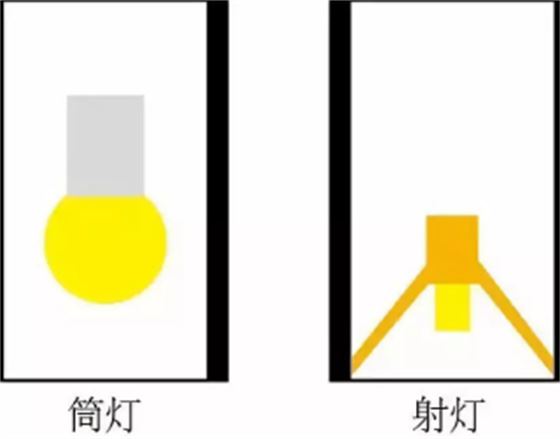 很多人認(rèn)為凸出來的才是射燈,在吊頂里面嵌入式的都是筒燈,外觀看起來沒什么區(qū)別,但實際燈光效果卻是天差地別,從光源看二者有很大區(qū)別。