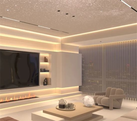 在選擇無主燈照明設備時,光束角是一個重要的考量因素,它直接影響著照明的效果和空間的氛圍。對于客餐廳和臥室,可以使用射燈,并選擇光束角為38°的產品。這樣的光束角可以使得光線集中,為空間帶來豐富的層次感,同時,它的洗墻效果也非常出色。