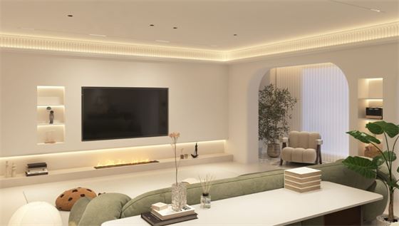 無主燈設計通過分散光源,能夠更好地控制光線的方向和強度,營造出層次分明的光影效果。這樣的設計不僅能夠突出客廳中的藝術品或裝飾細節,還能夠根據不同的活動和場合調整光線,比如在觀看電影時創造更加沉浸的氛圍,或在聚會時提供更加明亮的環境。