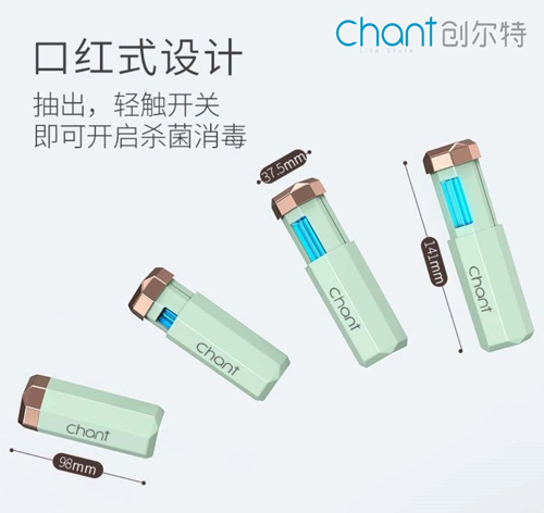 創爾特紫外線消毒棒身長98mm,迷你輕便的設計,隨拿隨走,輕松上街,把它放入包袋內,仿佛無物,輕松自在。
