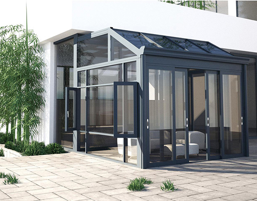 尊霸陽光房100*100系列采用新型節(jié)能環(huán)保型材,配置高強度尼龍隔熱條,加寬中空玻璃的中空距離,有效增強隔熱、隔音效果;采用的玻璃鍍有透光性能好、可反射紅外線的膜,更好地保護陽光房使用者的視力;受力結(jié)構(gòu)合理,質(zhì)量穩(wěn)定有保證,外觀風格多樣,可滿足不同消費者的個性化需求。