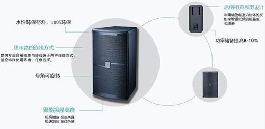 KX產品具有水性環保材料,聚酯振膜高音單元,擁有著極高強度,極地的失真,高音的號角可旋轉,安裝方式更佳靈活,后導向聲場設計,利用墻壁或者物體的反射來增強低頻的能量感與包圍感。