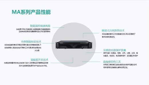 功放采用的是MA系列產品性能,采用了“功率智能恒定技術”可恒定在安全的工作范圍工作更安全更穩定。散熱采用的是“隧道式冷風散熱技術”將功放模塊散熱工作在隧道式狀態,極大的提高了散熱效率與穩定性。