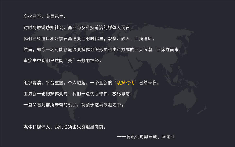 媒體至此迎來了一場(chǎng)全產(chǎn)業(yè)鏈的變革,我們將其定義為一個(gè)全新的“眾媒時(shí)代”。