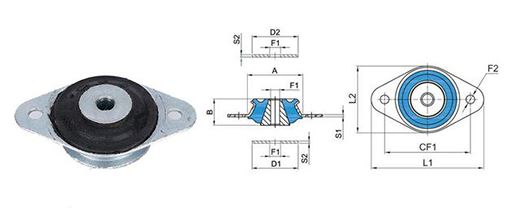 錐形減振器CN46有特殊的橡膠截面,用于剪切和壓縮受力,從而允許良好的軸向位移。 錐形支架是低成本隔離器,在緊湊的尺寸內具有高承載能力,為廣泛的應用提供了穩定的解決方案。 這種安裝方式非常適用于卡車,汽車發動機,散熱器等,駕駛室等。安裝座配有兩個安全墊圈,以防止過載。應用領域發電機組發動機壓縮機特種裝備泵供熱通風與空調 生產標準 材質:DD13(酸洗板)&DC04(冷板)Q/BQB403-2003 天然橡膠/合成橡膠表面處理:鍍鋅 根據客戶實際要求剛度公差 +/-15% 附加部分 硬度及材料可選。
