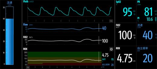 新冠疫情暴發以來,ROX指數應用被寫入新冠呼吸治療專家建議。SV70實現了對ROX指數的實時連續監測,動態預測高流量氧療治療的成敗,及早把握升級治療的時機,避免治療的延誤。