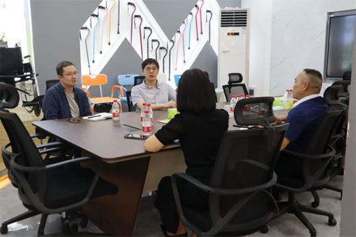 2022年10月8日,中國老齡事業(yè)發(fā)展基金會老年產(chǎn)業(yè)人才專項基金(人才辦)秘書長賈云靜和執(zhí)行總監(jiān)劉磊一行蒞臨中山鈺民醫(yī)療科技參觀考察,鈺民總經(jīng)理王冬梅、營銷總監(jiān)譚海等領導熱情接待了來訪一行。
