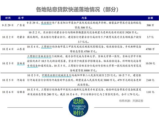目前各省市積極響應(yīng)政策,已開始執(zhí)行使用財(cái)政貼息貸款更新改造醫(yī)療設(shè)備需求的調(diào)查工作,截至9月30日,僅浙江、江蘇、安徽等省已上報(bào)約 180 億元的設(shè)備采購需求。全國數(shù)千億級(jí)醫(yī)療設(shè)備更新改造需求即將釋放。十一國慶期間財(cái)政貼息貸款項(xiàng)目單位與銀行積極簽約對(duì)接保障工作,目前各地貼息貸款快速落地,截至10月11日公開數(shù)據(jù),各省市已落地貼息金額約191.55億元。
