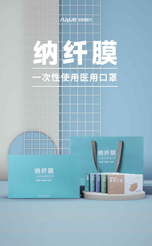和普通一次性口罩的材料不同,此次如悅醫療采用高科技納纖膜打造防護效果更優的口罩。所謂“納纖膜”是將納米纖維收集固化后形成的膜材料,與普通纖維膜材料相比,其纖維直徑更小,是人頭發的四百分之一,更小的纖維直徑帶來更好的阻隔性能,能夠充分將各種微粒、細菌、病毒、花粉等阻擋住,同時物理阻隔相較于靜電吸附效用時間更長,真正做到了高效、長久防護。