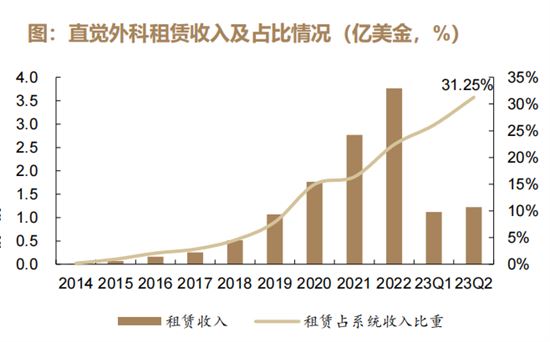2、直覺外科,租賃模式或將接棒發力,手術量繼續保持良好增長態勢
