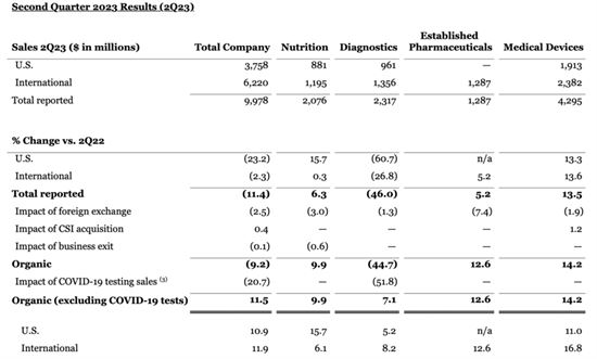 1、雅培醫療器械、制藥和營養品在基礎業務中表現強勁雅培在2023年第二季度全球銷售總額約為100億美元,主要由強大的基礎業務驅動,其有機銷售增長占11%。醫療器械、制藥和營養品在基礎業務中表現強勁。