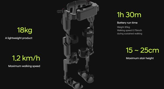 據悉,X-ble MEX是現代機器人實驗室開發的一種可穿戴醫療機器人,也稱醫療外骨骼,用于幫助下肢肌肉重建和關節靈活性恢復。這款可穿戴式機器人對截癱患者尤其有益,可以幫助患者進行各種各樣的運動,比如在平坦的地面上行走、爬樓梯、坐和站立。總重(包含電池)小于18kg,最大行走時速為1.2km每小時。電池可支持85kg的用戶,以0.75km/h的時速持續行走一個半小時。可跨越的最大階梯高度為15~25cm。
