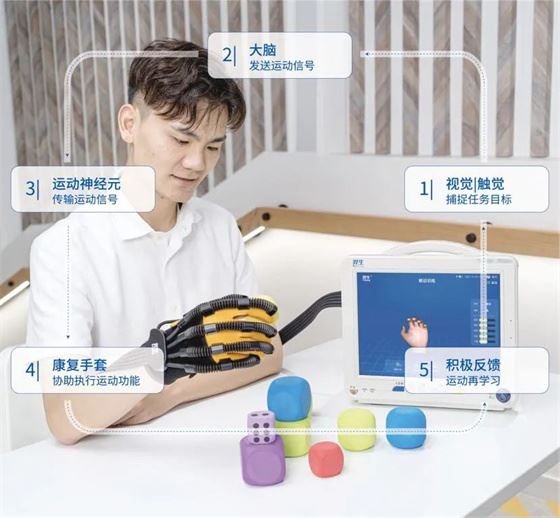 在產(chǎn)品設(shè)計(jì)上,“羿生腦機(jī)接口康復(fù)訓(xùn)練與評估系統(tǒng)”采用彈性織物和無壓痕縫制技術(shù),使患者手部受力均勻,不會(huì)對皮膚造成傷害,且康復(fù)手套有多種尺寸,滿足不同手型的患者需求。通過該系統(tǒng),患者可實(shí)現(xiàn)多維度、多場景、主動(dòng)化的康復(fù)治療,大大提高臨床康復(fù)效率,有效降低患者致殘率。