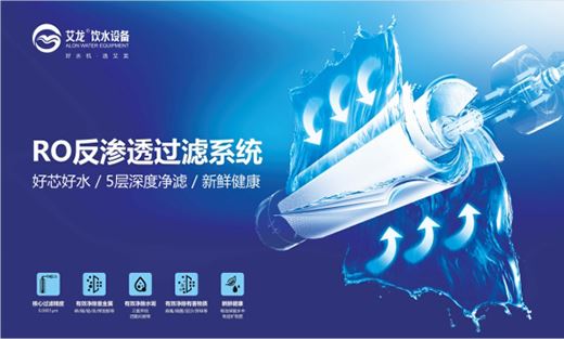 艾龍飲水設備內置RO反滲透過濾系統,其過濾膜的孔徑僅為0.001μm,有效凈除水中細菌、有機物、無機物、重金屬等對人體有害的物質,同時還能保留水中有益的礦物質元素,讓水不僅干凈,還有營養,保證每一滴水都潔凈新鮮,每一口水都安全放心,每一杯水都甘甜可口。