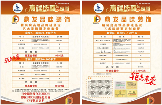 新店開張呈喜色,舉業(yè)有方聚新財(cái),在這個(gè)喜慶的日子里,涂布斯藝術(shù)涂料也給消費(fèi)者帶來了鉅惠活動(dòng)。開業(yè)期間不僅有預(yù)存3000元即送300元現(xiàn)金抵用券的優(yōu)惠,還推出了精裝房高端品牌硅藻泥藝術(shù)漆墻面定制套餐,買套餐即送電視背景墻、石膏線和施工保護(hù)等服務(wù),用最實(shí)惠的價(jià)格做出最好的效果。