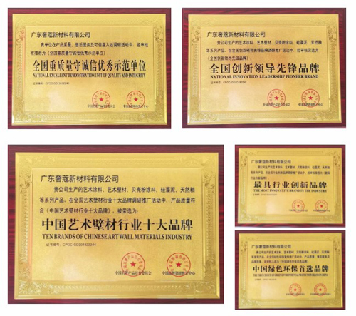 對品牌、品質(zhì)、服務(wù)、 責(zé)任的執(zhí)著追求和杰出的市場表現(xiàn)讓源蔻榮獲眾多殊榮:“中國藝術(shù)壁材行業(yè)十大品牌”、“最具行業(yè)創(chuàng)新品牌”、“中國綠色環(huán)保首選品牌”等榮譽(yù)稱號。