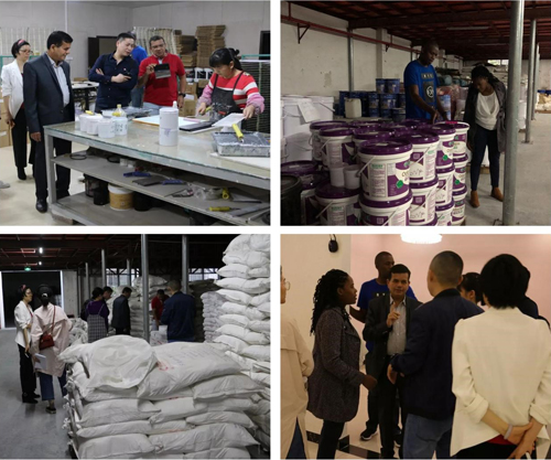 源蔻執行董事長李金旺熱情地接待了遠道而來的客人。在李總的陪同下,肯尼亞客戶一行人參觀了公司的藝術涂料生產車間,李總給他們詳細介紹了生產車間的環境和生產工藝流程,使他們對公司的研發能力、生產能力、管理等方面的情況有一個直觀了解,并對客戶提出的疑問給予專業性解答。源蔻團隊豐富的專業知識和高素養的工作能力,讓肯尼亞客戶留下了深刻的印象。