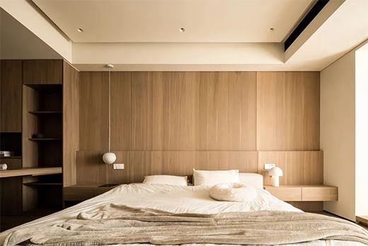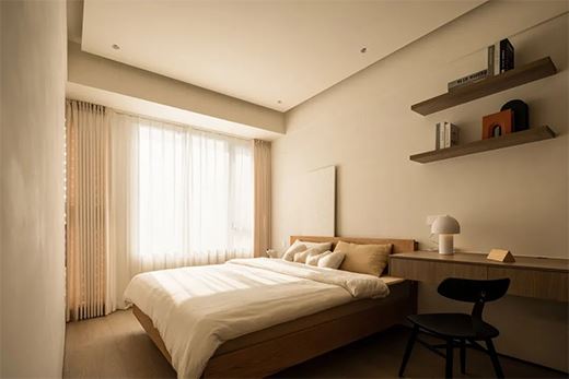 主臥整個空間色調以奶油色和木色為主